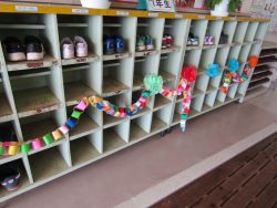 昇降口の下駄箱は、どの学年もきちんとそろっていました。気持ちがよいですね。