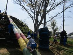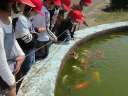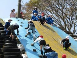 1年生は、鯉に餌をあげていました。「ごはんだよ」と言って仲良く餌をあげていました。鯉も喜んでいたようです。3年生は、先生の監督のもとチャイルドマウンテンができるようになりました。4年生から6年生は楽しく遊んでいました。