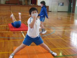 今日は、昨日と違い寒い1日となりました。寒い中ですが、どの学年もしっかり取り組んでいました。3年生はマット運動で、開脚後転に挑戦していました。(ポーズもとってくれました。)暑くなったり寒くなったりで、気温の変化もありますので、体調をくずさないようにしてほしいと思います。