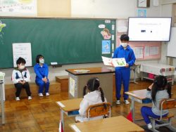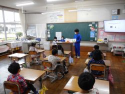 朝の読書の時間に、6年生が1年生に読み聞かせをしていました。1年生もとてもよく聞いていました。