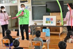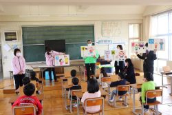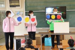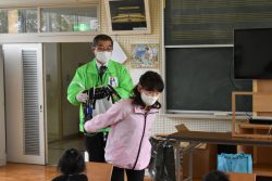 1年生の防犯教室が行われました。スクールサポーターの方や生活安全課の方々が来てくださいました。不審者が出て、ランドセルをつかまれてしまったら、どうするかなど、わかりやすく教えてくださいました。