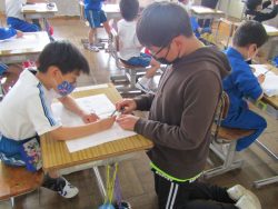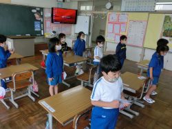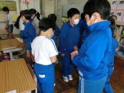 今日のお昼休みに清潔調べがありました。高学年の保健委員会が1年生の面倒をよく見ていました。すばらしいです!