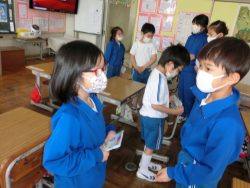 また、2年生が1年生へ朝顔の種をプレゼントしました。