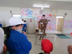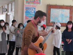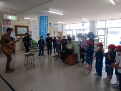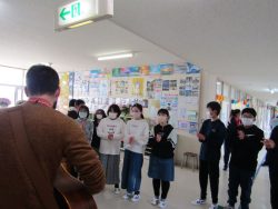 そして、そのあとALTの先生が、昇降口でギターを弾いてくれました。カントリーロードとギターマンという2曲です。突然の企画でしたが、快く演奏してくださいました。子供たちもたくさん集まってきて、大喜びでした。ありがとうございました!!