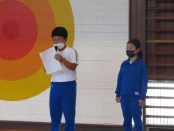 児童会を中心として、「おあしすさ」運動と「ひまわりプロジェクト」についての説明がありました。また、図書委員会から図書室の新しいコーナーについての紹介がありました。児童朝会の発表は、とても分かりやすく、素晴らしかったです。