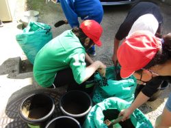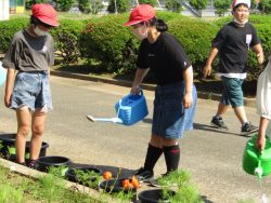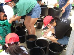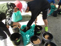 6時間目には、5,6年生が、植木鉢に土を入れ、5月30日(月)に行われる「ひまわりの種まき」の準備をしました。てきぱきと動く高学年で、感動しました。