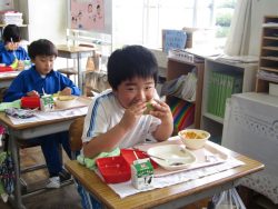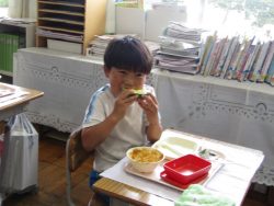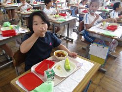 3年生の教室の朝の様子では、今日の給食のメロンについての話題が出ていました。そして給食では、大きなメロンが配られました。2年生の教室に行くと、おいしそうにほおばっていました。また、体力テスト2日目が行われました。20mシャトルランです。1~3年生の記録を高学年がとってくれました。応援の拍手が、頑張る気持ちを高めたと思います。