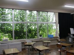 8.18 みごとなグリーンカーテン4年生の育てたツルレイシが大きくなり、みごとなグリーンカーテンができました。教室の中から見ると日差しを遮りとても涼しげです。 |