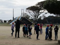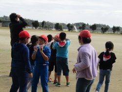 校庭で3年生が太陽の観察を遮光板を使って見ていました。