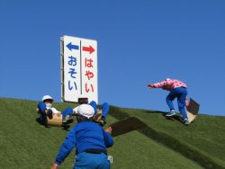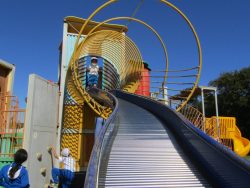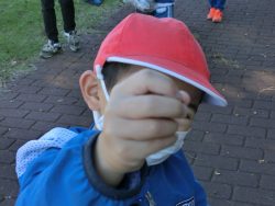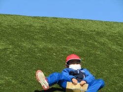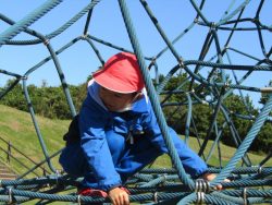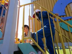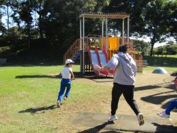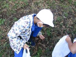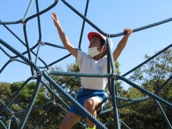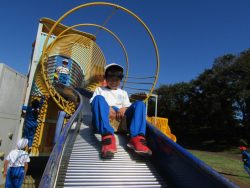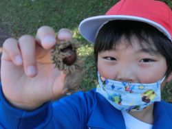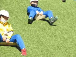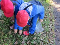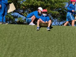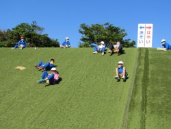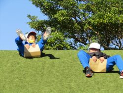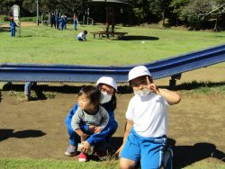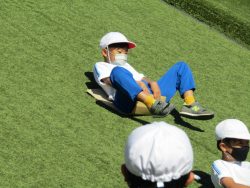 秋晴れで、大変さわやかな1日でした。秋を探した後、遊具でたっぷり遊びました。担任の先生が芝滑り用の段ボールをたくさん用意して、さらに楽しく遊べました。みんなとっても楽しそうでした。