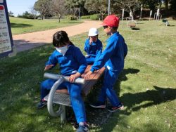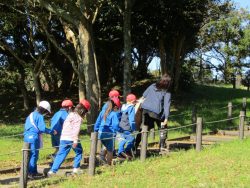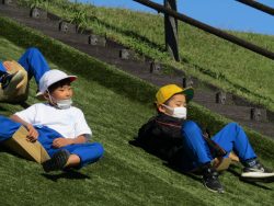 10.20① 1.2年生 校外学習~秋を見つけに行きました~秋晴れで、大変さわやかな1日でした。秋を探した後、遊具でたっぷり遊びました。担任の先生が芝滑り用の段ボールをたくさん用意して、さらに楽しく遊べました。みんなとっても楽しそうでした。