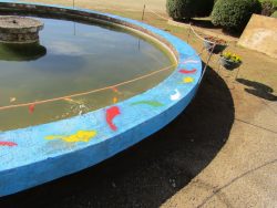 11.14 鯉の池リニューアル1年生と担任の先生が鯉の池の淵をペンキでステンシルしました。とっても素敵です。これからも鯉をよろしくお願いいたします!