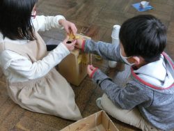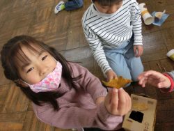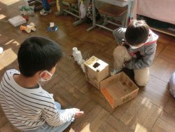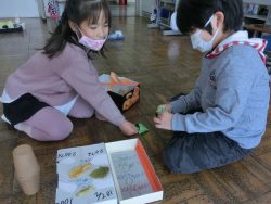12.9 秋のおもちゃで遊ぼう生活科で、秋のおもちゃを作りました。拾ってきたドングリや落ち葉で作成しました。とっても素敵な秋のおもちゃができました。