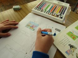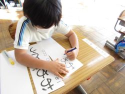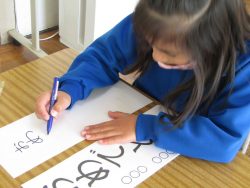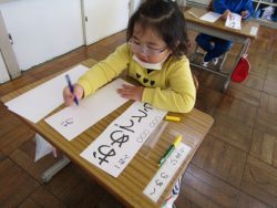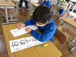 1年生 もうすぐ冬休み。書き初めの練習です。