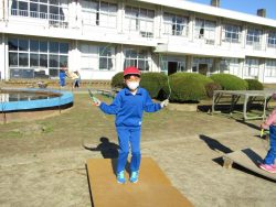昨日の昼休みに、5,6年生がジャンプ台を設置する手伝いをしてくれました。おかげで今日の昼休みは、ジャンプ台でなわとびの練習をする子供たちがたくさんいました。冬の体力作りにぜひ縄跳びを頑張ってください。