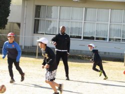 今日はALTの先生も一緒です。ワールドサッカーです!