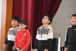 12.19 あの合唱よ 再び・・・(音楽会発表曲ビデオ撮影)11月の予定されていた音楽会での発表曲のビデオ撮影を3校時に行いました。1年生や職員室の先生方が見に来てくださって、やる気もMAXとなりました。間があいてしまっていたにも関わらず、とっても素敵な発表ができました。よくがんばりました。
