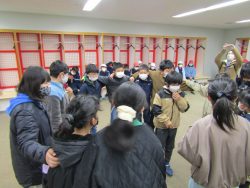 選手控え ロッカールーム 円陣を組んで掛け声をかけました!