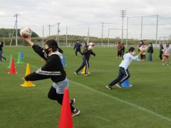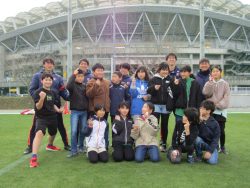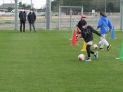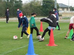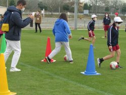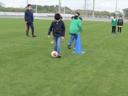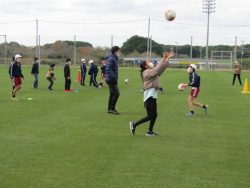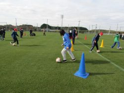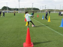 次はサッカーの練習です!旭東小学校と一緒に楽しみました。