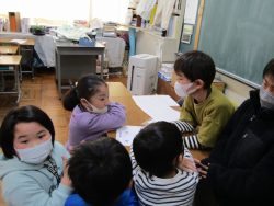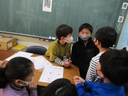 1.27 スクールカウンセラーとの授業(2年生) ありがとう5年生2年生は、グループエンカウンターの授業を学活で行いました。スクールカウンセラーと一緒に、自己表現することの大切さや友達の意見を否定しないことなどで、楽しみながら学ぶことができました。