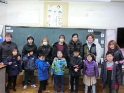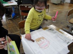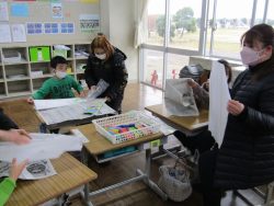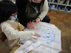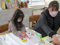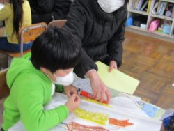 1年生は、保護者と凧作りに取り組みました。おうちの人と一緒にとっても楽しそうでした。