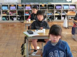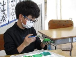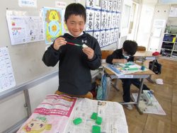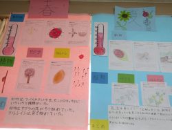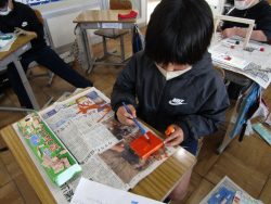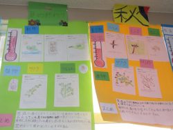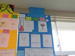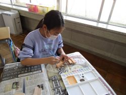 4年生は、図工で木材に色を塗っていました。教室には、植物調べの掲示物が飾られていました。みんなよくがんばっていますね。