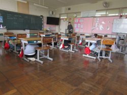 1年生も、机の下にもぐって、身を守っています。とても上手です。