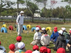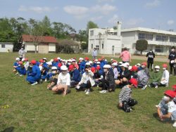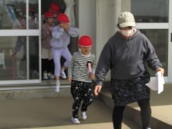 地震から火災が起きる避難訓練。避難経路の確認を兼ねて行いました。「お・か・し・も」の約束をしっかり守って、避難することができました。昨年度は、避難指示から校長先生への報告までに4分かかってしまいましたが、今年は2分9秒という短い時間で避難することができました。すばらしいです。次はもっと素早く避難できるようにがんばりましょう。