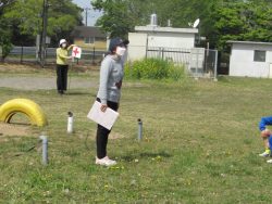 避難場所に集合です。おしゃべりがほとんど聞こえませんでした。