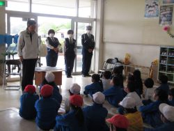 1,2年生 交通ルールのお話を聴きました。 けんちゃんも来ました。