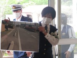 外に出て、信号の渡り方や道路の歩き方の練習をしました。