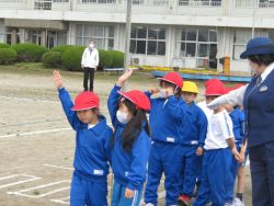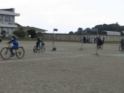 1,2年生は2時間目に、3~6年生は、3時間目から交通安全教室がありました。3時間目の途中から雨が降ってきてしまい、4年生や6年生は自転車に乗ることができませんでした。せっかく持ってきてくれたのに申し訳ありません。これからも 自転車の乗り方に十分に気を付けて乗ってくださいね。