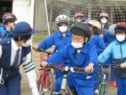 3~6年生 お話を聴いた後、道路での自転車の乗り方を勉強しました。