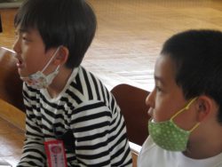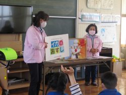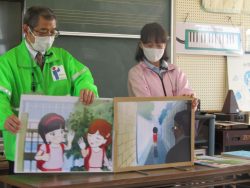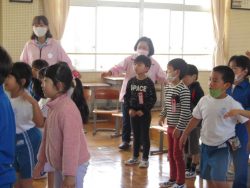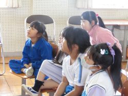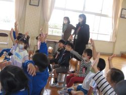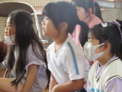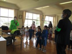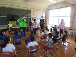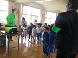 鉾田警察署生活安全課職員、スクールサポーター、 防犯協会女性部、 教育委員会の方々による防犯教室が行われました。「いかのおすし」をしっかり覚えました。スクールサポーターさんから宿題もでたようです。