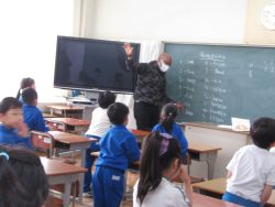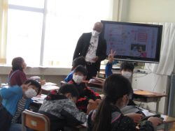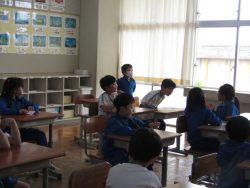 4.24 English Time今日は1,2年生も外国語に親しみました。ALTの先生と楽しそうです。自己紹介をしたり歌を歌ったりしました。