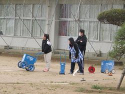 放課後は、先生方で、陸上の練習のためのラインを引きました。