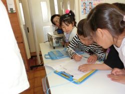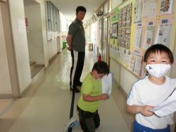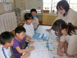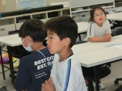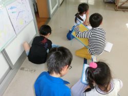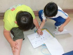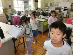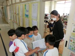 2年生に助けてもらいながら、ワクワクで探検に出かけました。インタビューの仕方もとても上手でした。
