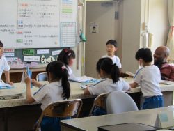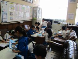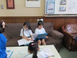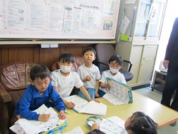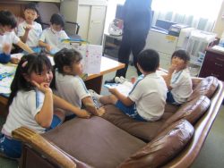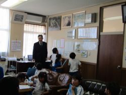 この間行けなかった探検の場所の続きを行いました。今日は、校長先生もいらっしゃいましたので、校長室の見学もできました。大喜びでした。