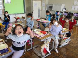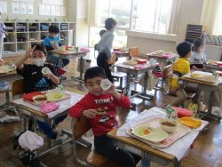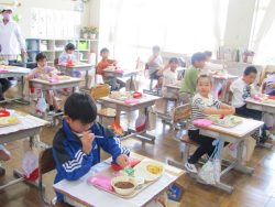 1,2年生の給食の様子 こいのぼりゼリーがでました!