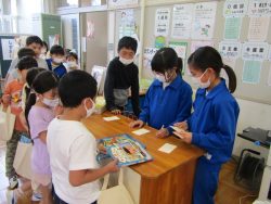 1年生は、昼休みに図書室で本を借りました。GWに読むのかな?