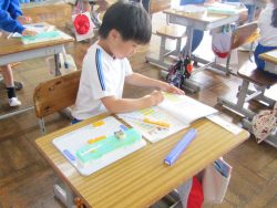 1年生 算数 勉強を頑張っていますね!手のあげかたが、かっこいいです
