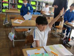 5.15 今日も元気いっぱい!今日は、雨が降ったりやんだりの1日でした。天気は悪かったですが、子供たちは元気いっぱいでした。 1年生 算数 勉強を頑張っていますね!手のあげかたが、かっこいいです