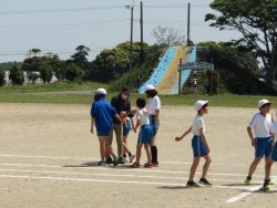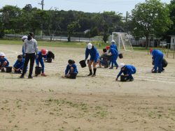 昨日全校児童が、体力テストや陸上記録会のために、校庭の草抜きをしました。今日は、きれいになった校庭で、陸上の練習をしたり昼休みにはリレーの練習をしたりする姿がみられました。