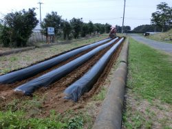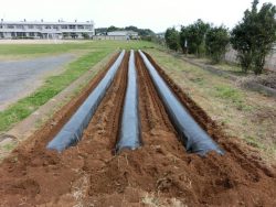 3年生の総合的な学習の時間で、さつまいもの苗を植えます。今日は、3年生のおうちの方が来て、マルチをはってくださいました。ありがとうございました。