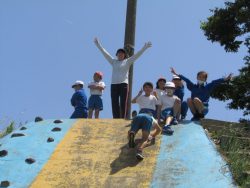 雨があがったので、お昼休みは、元気に遊びました。ずいぶん暑くなってきました‼