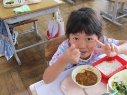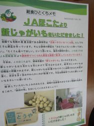 今日の給食のカレーのじゃがいもは、JAほこたさんからいただいた新じゃがいもだそうです。ほくほくしていておいしかったですね❕