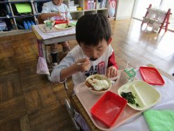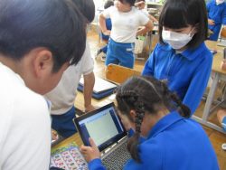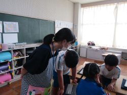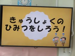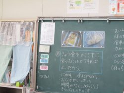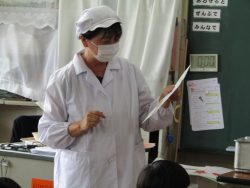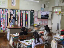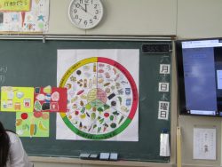 栄養教諭の先生が食育指導を行ってくださいました。3年生では、「給食を残さずたべるにはどうしたらいいかな。」という課題に向けて、グループで話し合いました。1年生では、給食センターについてのお話がありました。大きなしゃもじにみんな驚いていました。