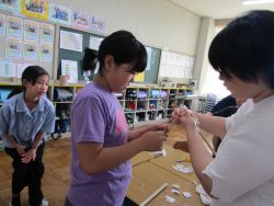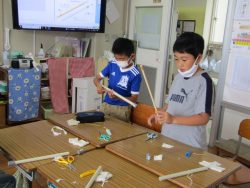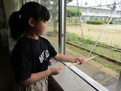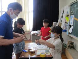 4年生 先生たちの手作りの水鉄砲だそうです。手ごたえを感じられましたか?