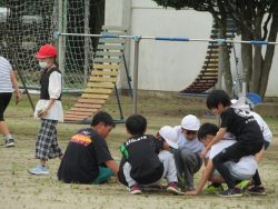 雨の日が続き、グラウンドに草がたくさん生えてきました。今日の昼休みに、みんなで草をぬきました。