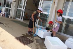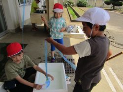 1年生は、外で楽しく体験活動です。どんな発見があったかな?